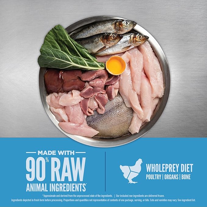 - This freeze-dried dog food is made with 90% raw animal ingredients* including free-run** chicken and turkey, nourishing organs, and wild-caught fish.
