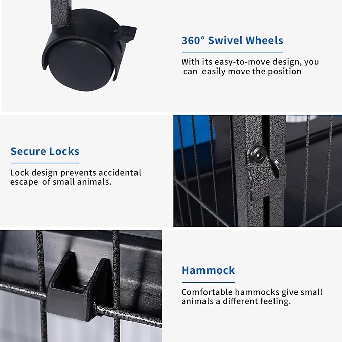 - [Humanized design]: We have built-in multiple doors for easy access to the inside of the small animal enclosure for feeding.In addition, we have a detachable deep base to hold trash for easy cleaning.