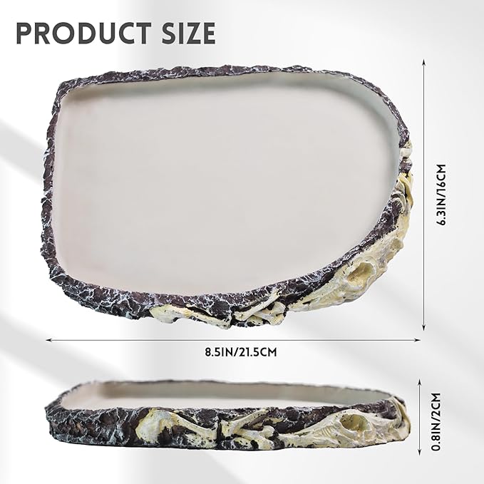 - 【Unique Design】: Snake water bowl restores the natural texture of the rock, bringing your tank closer to the natural atmosphere, and the paleontological bone decoration around the edge of the water dish adds a spooky feel to your pet's habitat.