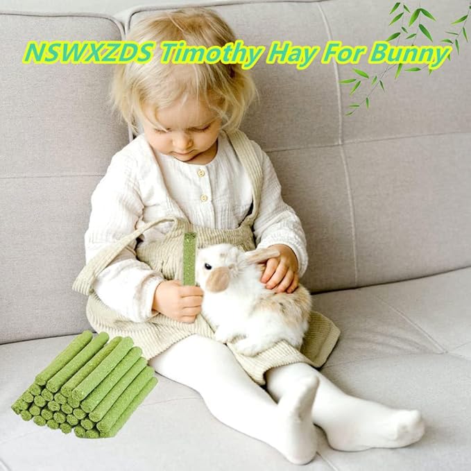 - 1.【Rabbit Toy & Bunny Food】:Timothy hay sticks for guinea pig handmade from 100% natural material, healthy & harmless timothy hay grass for rabbit.Hamster timothy toy contains high fiber, low protein, multiple vitamins. Timothy hay for rabbit not just a molar clean teeth bunny treat snack,bunny hay also can be used as a hamster chew toy. Rabbit chew treats are very beneficial to small animals. (Included 20PCS)