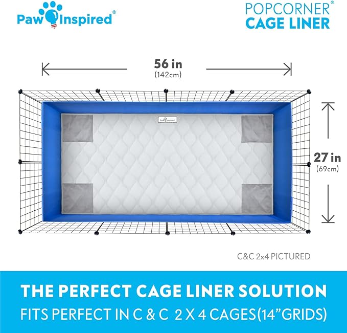 Paw Inspired PopCorner Guinea Pig Cage Liners | Washable Fleece Bedding or Pet Bed Mat for Small Animals | Super Absorbent Pee Pad with Reinforced Corners and Waterproof Bottom (C&C 2x4, Light Gray)