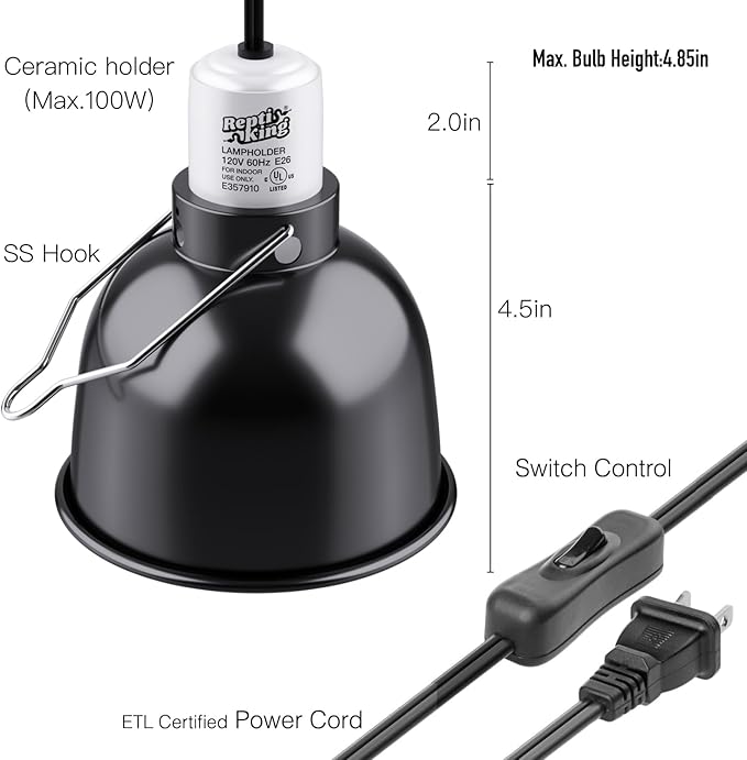 - UL Listed Ceramic Socket with E26 Interface. ReptiKing Reptile Dome is warranted to be free for replacement if any damage or deformation. No hesitate to contact us if you need any support.