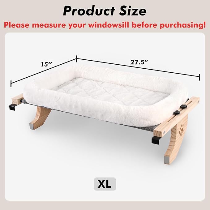 AMOSIJOY Cat Sill Window Perch Sturdy Hammock Window Seat with Cushion Cover, Wood & Metal Frame for Large Cats, Easy to Adjust Cat Bed for Windowsill, Bedside, Drawer and Cabinet (XL)
