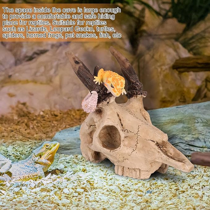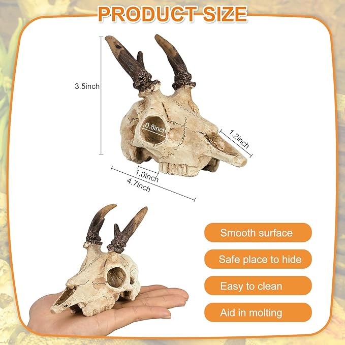 - 4.HAND-PAINTED SURFACE: Leopard gecko aquarium tank accessories, make the elk skull in a more realistic state into your desert, rainforest, mountain, and other types of breeding tanks, so that your pet will not be overly frightened by the new environment.