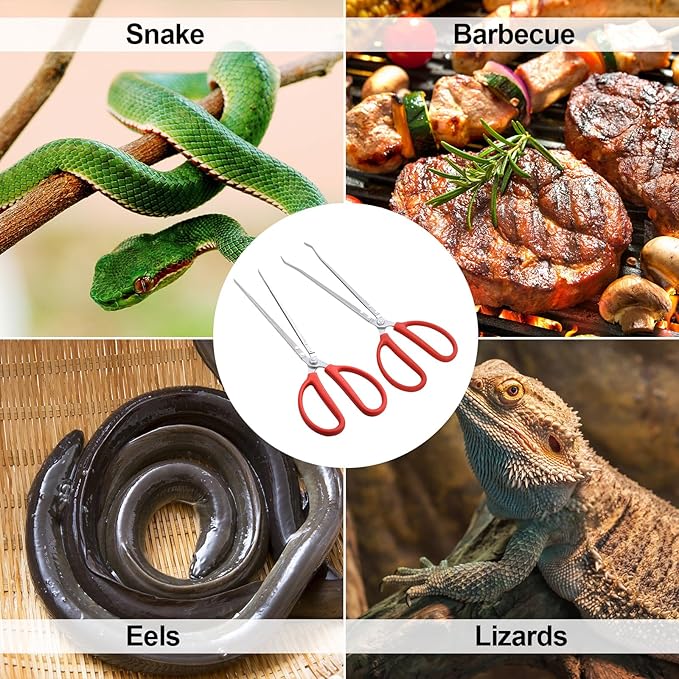 - NON-SLIP HANDLE: Snake feeding tongs have a scissor shaped handle that is non-slip for easy gripping and a silicone sleeve for a comfortable grip. feeding tongs are uniquely designed to make feeding more efficient and simple.