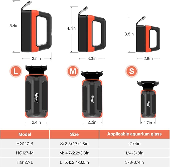 - Strong magnetic cleaning brush, with strong magnetic force, the brush can be firmly attached to the fish tank, and it can be directly attracted by magnetic force when turning. The small size is suitable for fish tanks with a thickness of no more than0.25IN, the medium size is suitable for fish tanks with a thickness of 0.25-0.38IN, and the large size is suitable for fish tanks with a thickness of 0.75IN. When the magnetic force range is exceeded, the cleaning brush will automatically float up, so you won't get your hands wet when you take it