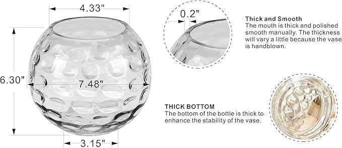 7.5" Dia Handmade Sturdy Dimpled Bubble Glass Vases, Bubble Planter Terrarium, Bud Vase, Fish Bowl Hurricane, Globe Flower Vase, Hurricane Candle Holder (7.5"x6.3", Bowl)