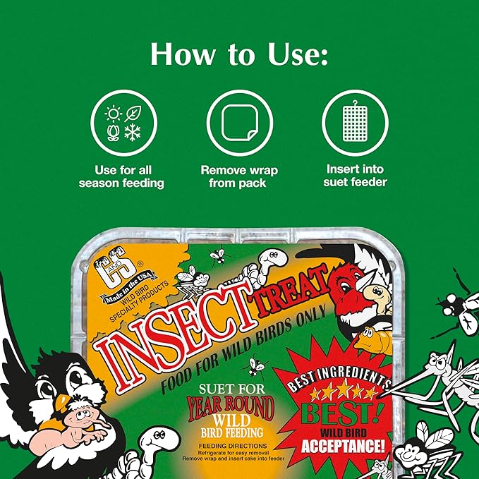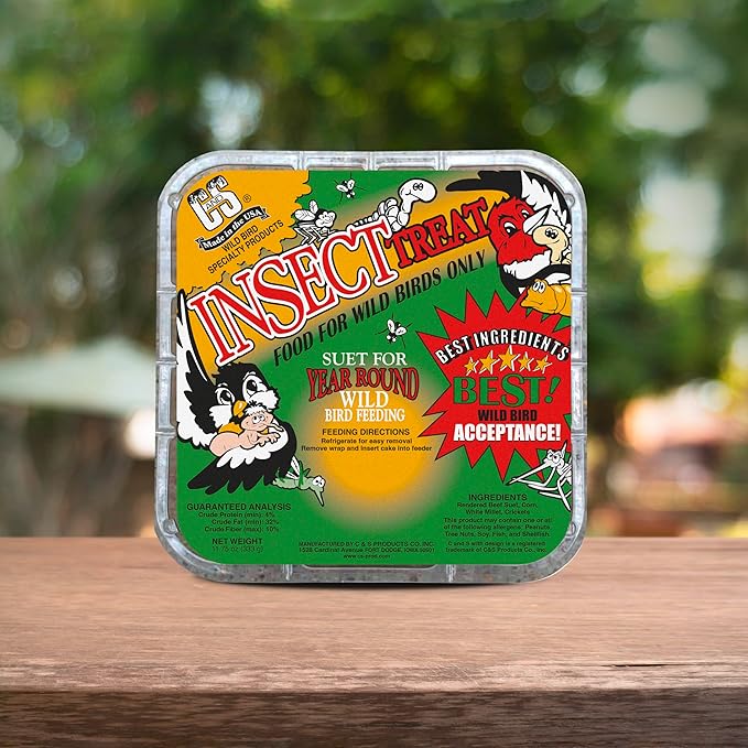 - ECONOMICAL & EASY TO USE compared to traditional seeds; C&S Insect Suet Treat combined with a suet feeder offer great value for today’s wild bird feeding customer