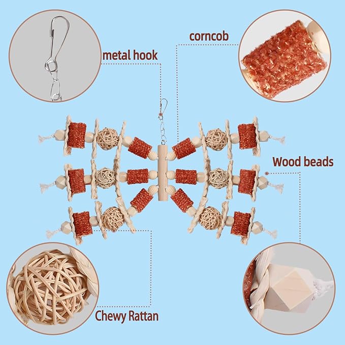 - Durable Structure: These toys are made of high-quality materials, including natural corn cobs, wicker woven wicker balls, wooden sticks and beads made of natural wood, allowing you to fully enjoy the fun of this healthy toy