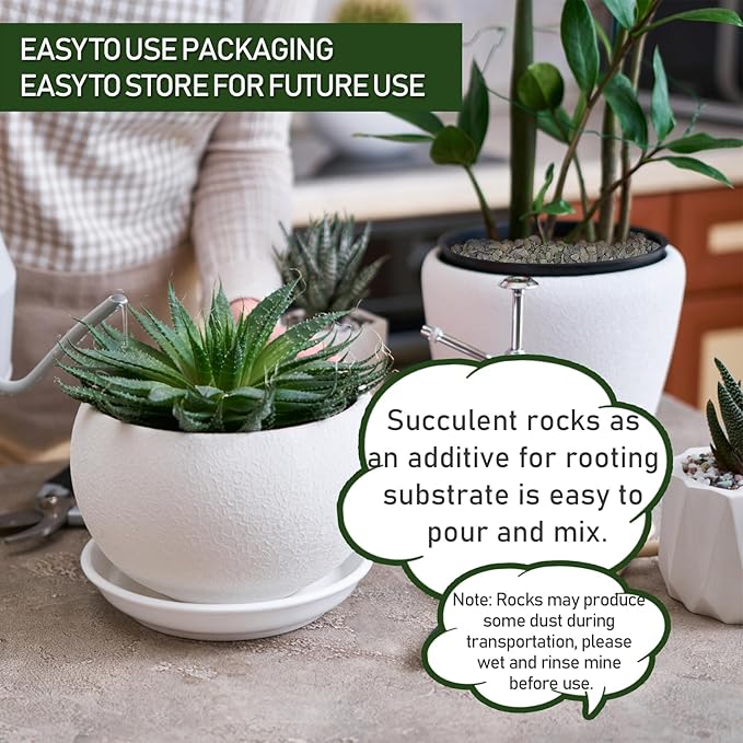 - Amazing Soil Conditioner - keep your plant babies growing healthily and happily! If you live in a compacted soil area and have never used succulent rocks which a rocks deposited in lakes and seas, crystalline, pure, and light., then you are out of fashion. You just need to mix it with your soil, and it will immediately improve the soil's quality. It can loosen the soil and allow water to deeply penetrate the ground, allowing plants to firmly take root.