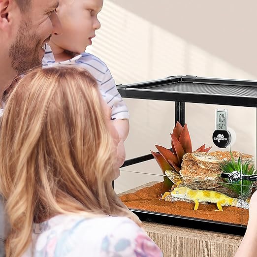 - Clear Digital LCD Display: This thermometer hygrometer for reptile tank can get accurate readings in seconds with fast-responding temperature and humidity sensor, and stay informed with real-time temperature and humidity updates. The digital LCD display eliminates any glare or light source that may distract or affect your pet's vision