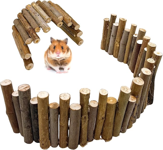 - [Relieve pet anxiety] : This hamster wooden bridge can stimulate pets' desire to climb and explore, promote exercise, cultivate their coordination and balance, relieve loneliness and anxiety, and increase fun