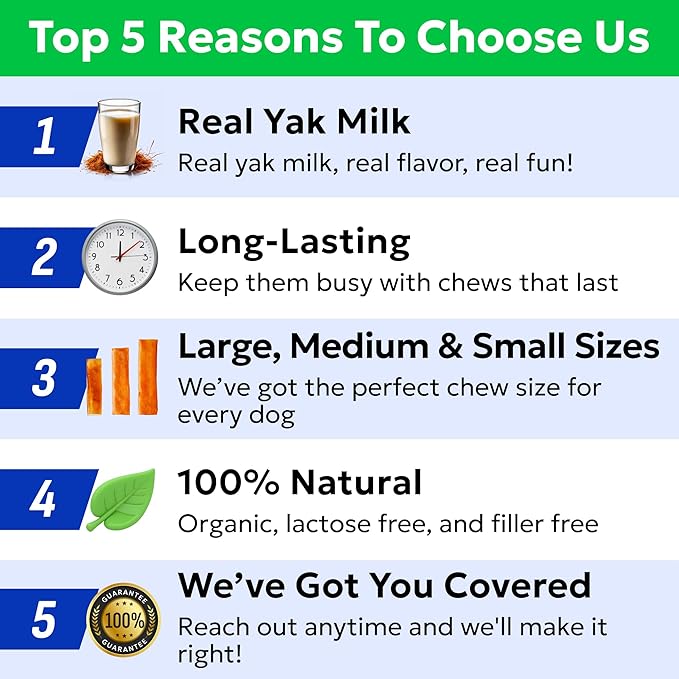 - Picky Pups Love It: Even the fussiest eaters can’t resist our long lasting dog chews! Made with real yack milk in Himalyan, they’re also available in a peanut butter flavored treat option!