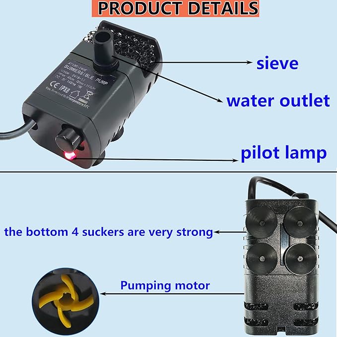 - 4.Preferred material, portable: URANT aquarium pump is driven by brushless DC motor, ABS plastic material, durable, quiet, durable, environmental protection, will not pollute liquid; Our small fountain pumps are designed to be small, lightweight and easy to use, (this is a small size pump, please confirm before buying)