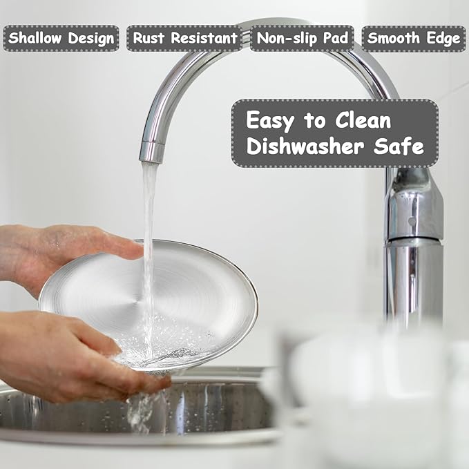 Stainless Steel Cat Dish Shallow Bowls Whisker Fatigue Cat Metal Plate with Non-Slip Pads for Wet Food Puppies Cats Kittens (2 PCS, 6.49 inch)