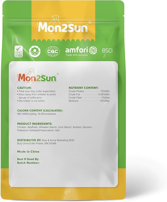 - [Natural and High Protein] The chicken rawhides are made with real chicken breast wrapped around a rawhide stick. The rawhides are of high protein, low fat.