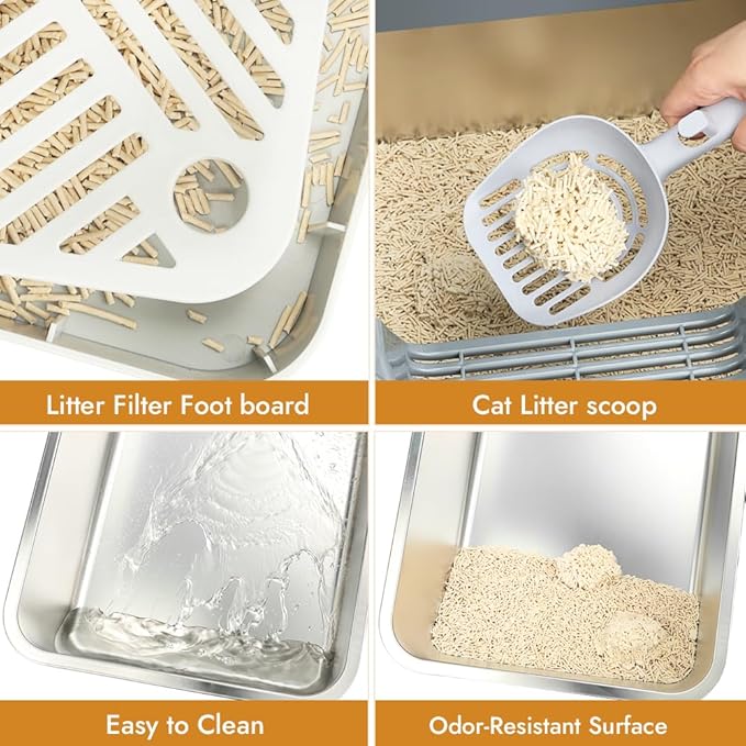- INCLUDES FOOT BOARD, LITTER MAT, AND SCOOP - Our large metal litter box comes equipped with a convenient foot board for easy access, perfect for older or short-legged cats. The accompanying litter mat captures leftover litter from paws, keeping your floors clean, while the sturdy scoop simplifies daily maintenance