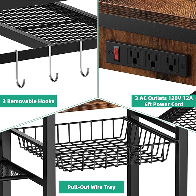 20-29 Gallon Aquarium Stand with 6 ft Power Strip, 5-Tier Metal Frame Fish Tank Stand 20 Gallon Fish Tank Stand 31.5" L*15.75" W Tabletop 400lbs Capacity (Vintage Brown, 20-29 Gallon)