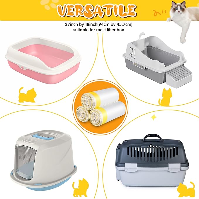 - Drawstring Design With Cat Litter Box Liners: Our cat litter bags have convenient sturdy drawstring handles for easy disposal.The drawstring design also helps to hold as much trash as possible. The drawstring allows for quick and effortless closure by simply pulling and tying it, eliminating the need for knots or complex tying methods, easy to install and empty with no odor and no mess. Our litter liners provide you with a comfortable use experience,saving you time and effort