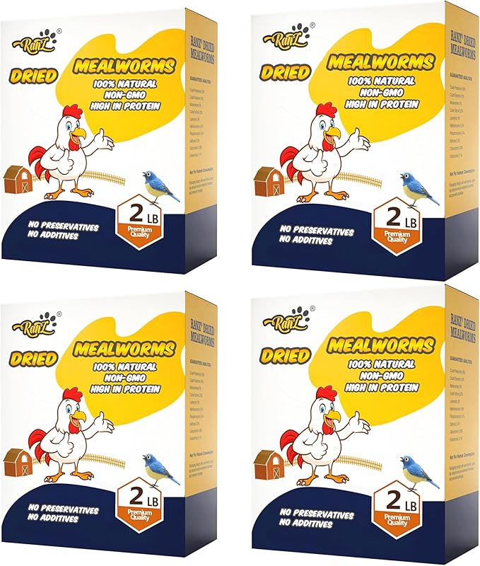 - 100% Natural, Non-GMO, High-Protein Dried Mealworms: RANZ Dried Mealworms are naturally sourced and free from any additives or preservatives, making them the ideal treat for chickens, wild birds, reptiles, turtles, fish, and more. Perfect for those seeking natural chicken feed, reptile snacks, or wild bird food.