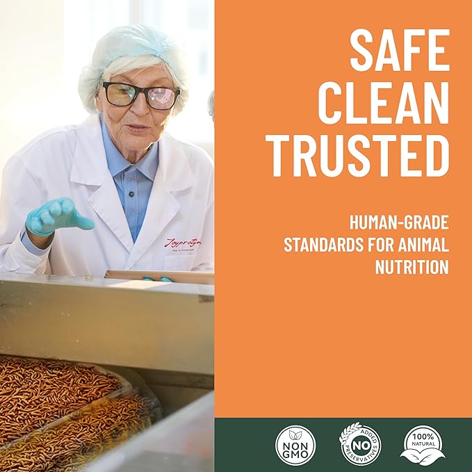- High-Calcium Chicken Grubs: Joyprotyn’s BSFL (Black Soldier Fly Larvae) feed offers 85x the calcium of traditional dried mealworms, enhancing eggshell strength and promoting bone health in your hens for sturdy eggs. This high-calcium feed is perfect for robust egg production and overall poultry well-being.