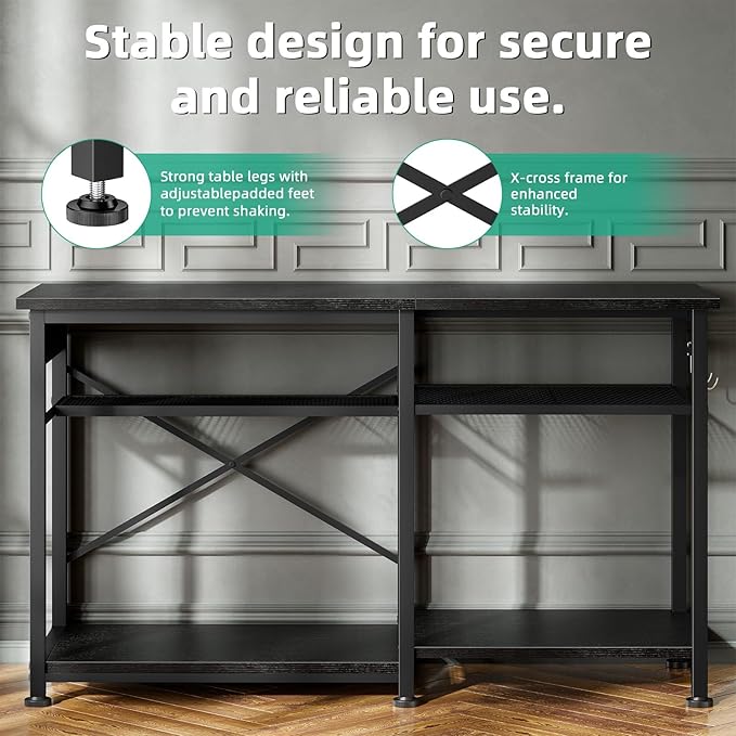 55-75 Gallon Aquarium Stand with 6 ft Power Strip, 5-Tier Metal Frame Fish Tank Stand 40 Gallon Tank Stand 49.2" L*18.9" W Tabletop 780lbs Capacity (Pure Black)