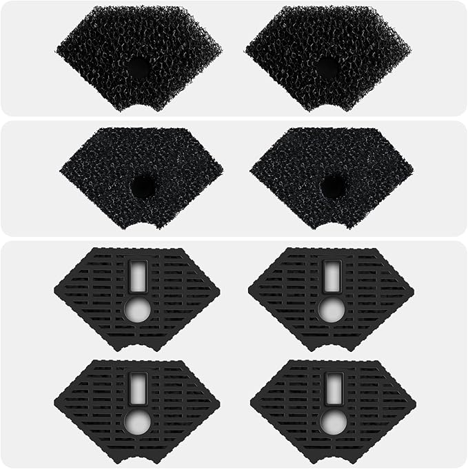 Turtle Tank Replacement Filter Media, Reptile Filter Replacement Parts, Including 2 x Coarse Sponge, 2 x Fine Sponge & 4 x Activated Carbon, for 10-40 Gal