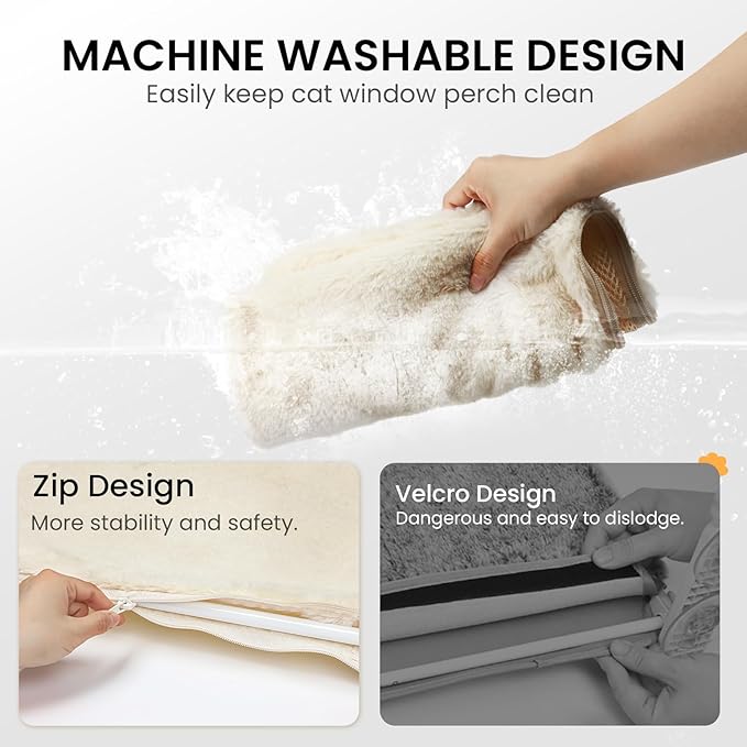 - 【Reversible Fabric】Sangoodier cat window perch has a soft fabric side for winter use, while the other side features breathable mesh for summer comfort. With a convenient zipper design, you can easily switch fabrics, and the cover is removable for machine washing.