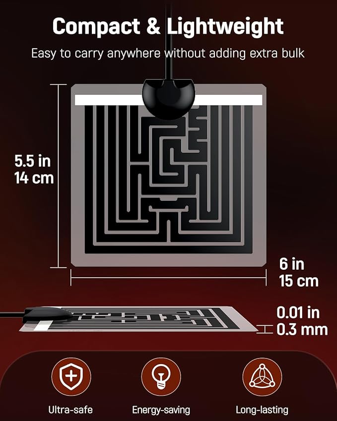 - Portable Heating Mat: Size: 6" L x 5.5" W. Compact and lightweight, it’s convenient to be taken with you during road trips. Never occupy much space or add extra bulk while providing a comfortable habitat for your lovely reptiles on the go