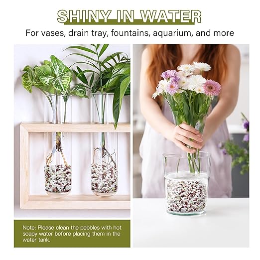 - Long-Lasting Beauty: Come with 6 pounds of decorative pebbles, each pebble measuring around 1/5” (3-6mm). Dye and oil-free, they resist fading when washed or use in water. Eco-friendly and recyclable, maintaining enduring beauty at home.
