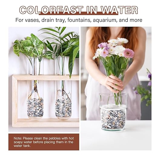 - Long-Lasting Beauty: Come with 3 pounds of decorative pebbles, each pebble measuring around 1/5” (3-6mm). Dye and oil-free, they resist fading when washed or use in water. Eco-friendly and recyclable, maintaining enduring beauty at home.