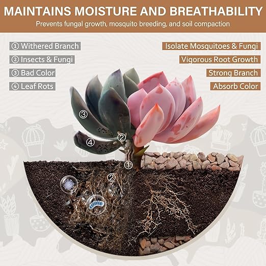 - Make Plants Thrive: Ideal for top and bottom plant use. Top placement deters pests, retains moisture, and regulates soil humidity. Bottom placement aids drainage, prevents overwatering, enhances aeration, and boosts nutrient absorption. Promotes healthier plants with strong roots and vibrant colors.