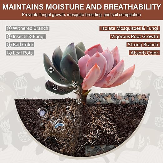 - Make Plants Thrive: Ideal for top and bottom plant use. Top placement deters pests, retains moisture, and regulates soil humidity. Bottom placement aids drainage, prevents overwatering, enhances aeration, and boosts nutrient absorption. Promotes healthier plants with strong roots and vibrant colors.