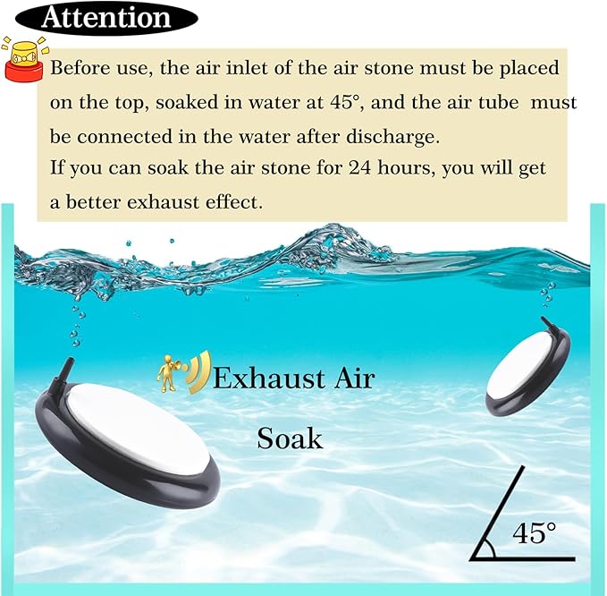 - ❤❤❤Before use, let air stone to maintain 45 degrees, the air inlet in the upper, into the water, soak for 24 hours. Then connected to the air pump to use, will get the best results. If uneven air flow occurs, please see the detailed instructions on the package, or the solution below the sales page.