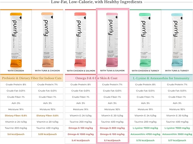 - HUMAN-GRADE PROTEIN SOURCES - Purrly uses only human-grade meat and fish as the primary protein source, exceeding industry standards and ensuring exceptional taste and unmatched nutritional value for your cat. These exquisite treats elevate snack time beyond ordinary treats, offering a truly gourmet experience that satisfies your feline's discerning palate. Each pouch serving unparalled quality and nutrition.