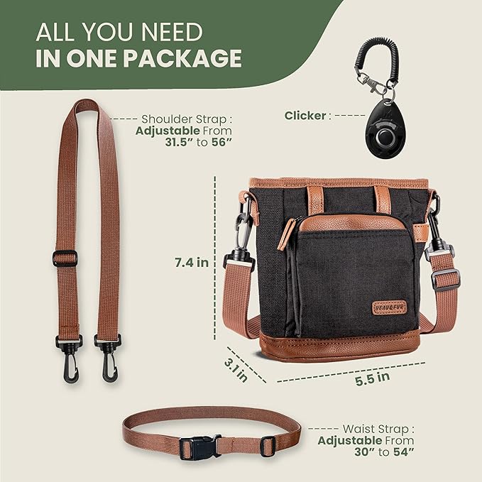 - MULTI-PURPOSE TRAINING ACCESSORY: This dog training pouch is great for carrying treats, clickers, and other essential training tools. With a built-in dispenser and expandable pocket, it’s ideal for daily dog training sessions or walks with your pet.