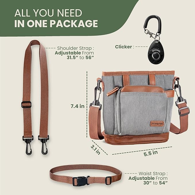 - MULTI-PURPOSE TRAINING ACCESSORY: This dog training pouch is great for carrying treats, clickers, and other essential training tools. With a built-in dispenser and expandable pocket, it’s ideal for daily dog training sessions or walks with your pet.