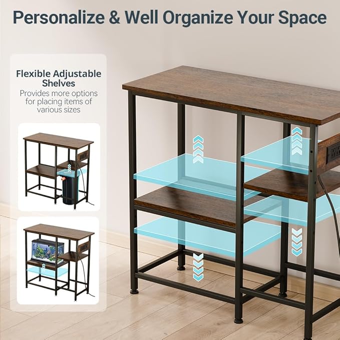20-29-37 Gallon Fish Tank Stand with Power Outlet, Metal Aquarium Stand with Height-Adjustable Stoarge Shelves, 6-Leg Reptile Tank Stand, 400lbs Capacity