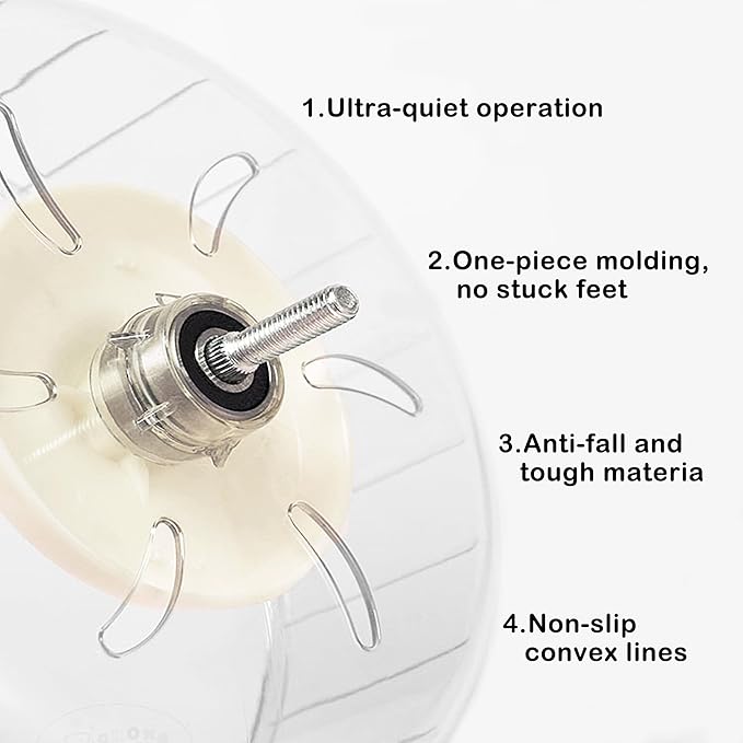 - Perfect Design: Reasonable Size of Running Drum & Wide Running track let you pet do not need to bend their back when running. The small wheel shows Transparent design, visually spacious and bright, it's easy to lets you watch your pet playing inside. The edge of the cylinder is smooth that won't hurt the pet's feet. Non-slip convex lines enlarge friction and enhance stability to avoid false step, One-piece molding design, easy to keep clean, just wipe with wet wipes.