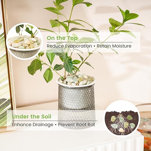 - [ Functional Plant Protection ] Top-layer jade river pebbles lock in soil moisture; mixed into soil, they boost drainage to prevent root rot. A dual-purpose solution for busy plant owners, especially with succulents or herbs.