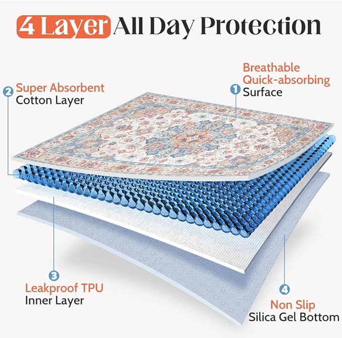 - 【4-Layer Leakproof Protection】 Designed with fast-absorbing flannel, an impermeable layer, breathable TPU, and a non-slip rubber base, our pee pads lock in moisture instantly, keeping floors and carpets stain-free and odor-free. Perfect for a clean, dry space for your pup!