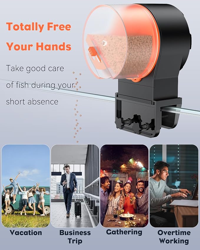 - Automatic Fish Feeder: Featuring a timed feeding function for up to 3 feedings per day, this aquarium fish feeder can automatically feed your fish every 8 hours, 12 hours or 24 hours.