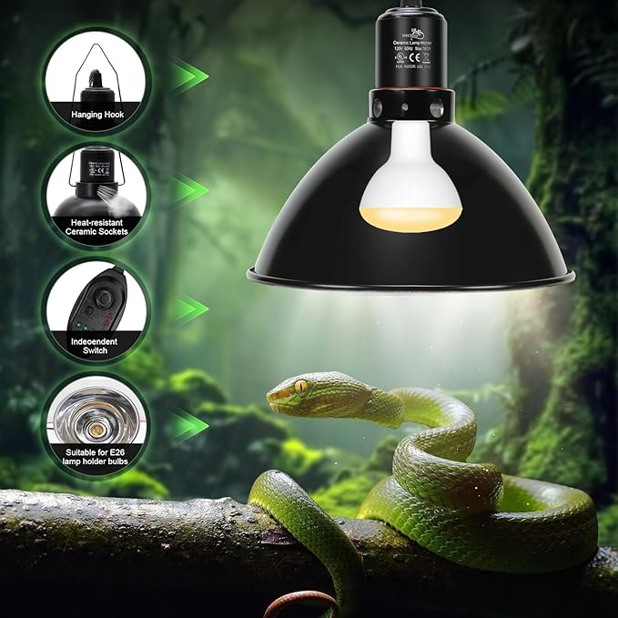 - Quick-Setup & Versatile Compatibility – Standard E26/medium base fits most reptile bulbs; secure clamp design works with terrariums up to 0.25” thick—no tools required for hassle-free installation.