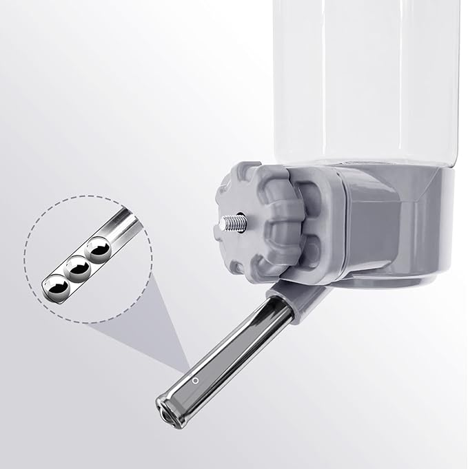LOS ANDES No-Drip Water Bottle/Feeder for Guinea Pigs/Hamsters/Bunnies/Ferrets/Squirrel/Hedgehog/Other Small Pets, Weather Resistant Cage Water Dispenser for Dogs/Cats, 18.5oz, Gray