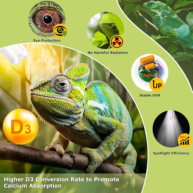 - Long-Lasting UVB Radiation – The upgraded ballast ensures low degradation of UVB radiation, providing consistent and stable UVB output. It is recommended to replace the bulb every 6-12 months to maintain continuous UVB exposure.