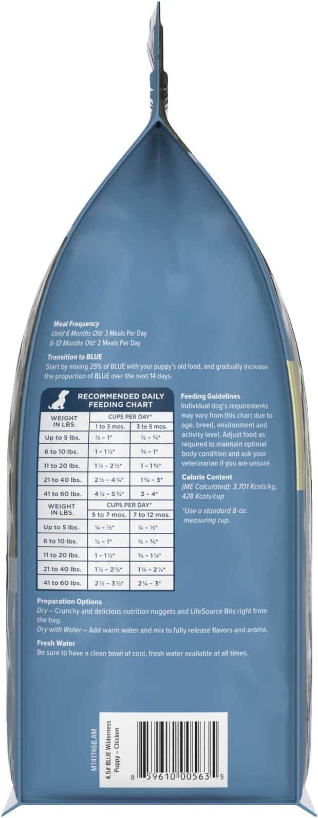 - CONTAINS: One (1) 4.5-lb bag of BLUE Wilderness Puppy High-Protein Dry Dog Food with Real Chicken, Grain-Free, Made in the USA with Natural Ingredients, Chicken