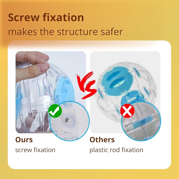 - Transparent Panoramic Observation Design:The 5.9-inch diameter highly transparent PC ball hamster toys have a clear 360°view without dead angles, allowing you to observe every cute moment of the hamster running, resting, etc. at any time. The transparent shell of the hamster wheel not only satisfies the owner's interactive fun, but also facilitates timely discovery of the pet's health status to ensure safety and worry-free.