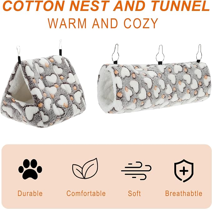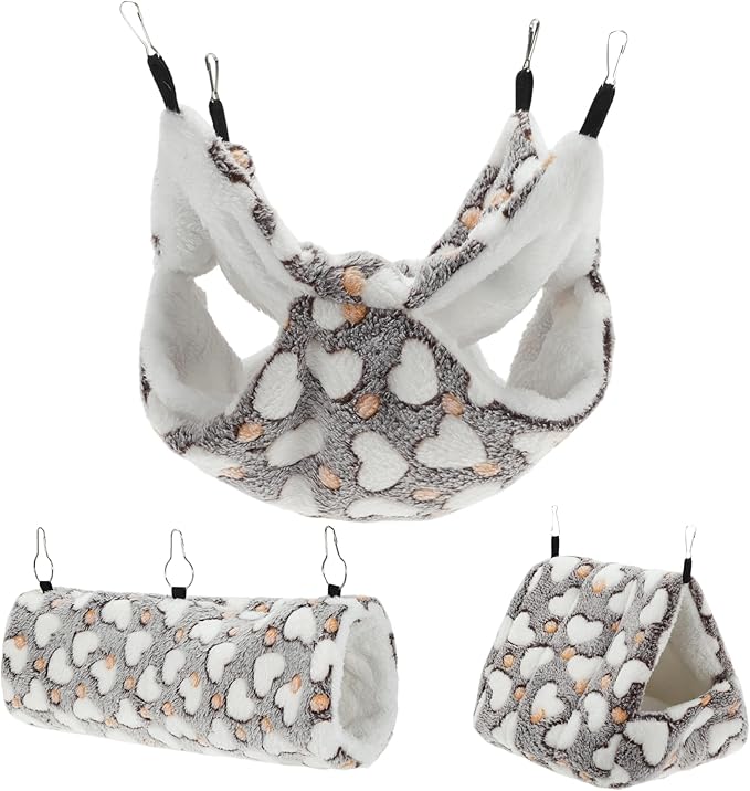 - Complete Set of Accessories: Elevate your small pet's living space with this comprehensive rat bed set that includes a hamster hammock, a hamster bed hideout, and a warm tunnel. The delightful heart design adds a touch of charm and practicality to your furry friend's habitat, ensuring hours of entertainment and comfort. Each accessory is thoughtfully designed to cater to your pet's needs and enhance their well-being.