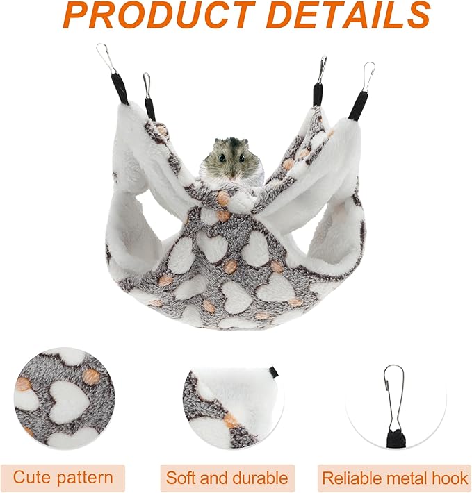 - User-Friendly Design: Simplify your pet care routine with these convenient small animal hammock accessories. Crafted from plush materials that offer warmth and are easy to clean, these items are equipped with handy built-in clips for hassle-free attachment to cages. Enjoy the peace of mind of knowing that your pets can effortlessly enjoy playtime and stay cozy, thanks to these practical and user-friendly features.