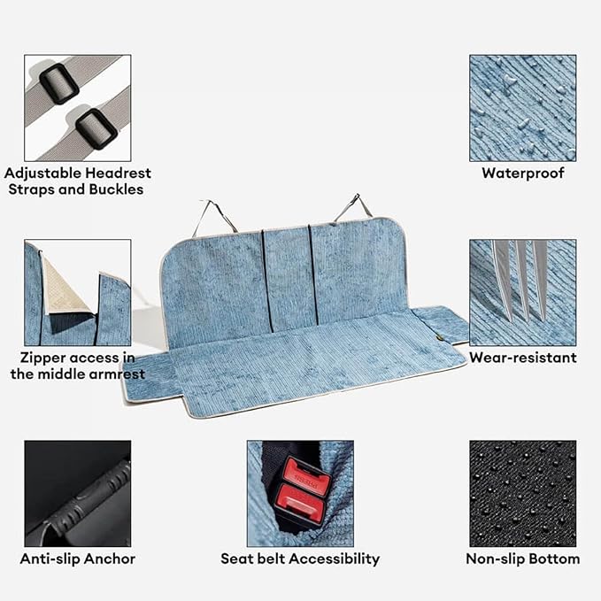 - TOTAL SEAT PROTECTION — Premium chenille fabric is waterproof, scratch- & bite-resistant, keeping mud, drool, and fur off your upholstery so your back seat stays spotless and new
